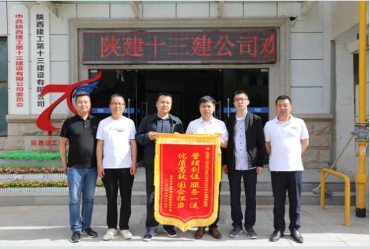 5月26日, 延安水務(wù)投資建設(shè)有限責(zé)任公司工程部部長(zhǎng)侯海濤一行,為陜建十三建公司送來一面寫著“管理到位 服務(wù)一流 優(yōu)質(zhì)高效 國(guó)企擔(dān)當(dāng) ”的錦旗,并對(duì)十三建公司優(yōu)質(zhì)高效服務(wù)給予了高度評(píng)價(jià)。