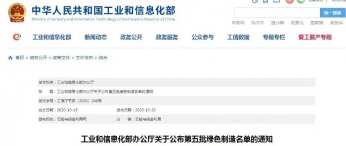 為貫徹落實(shí)《工業(yè)綠色發(fā)展規(guī)劃(2016-2020年)》和《綠色制造工程實(shí)施指南(2016-2020年)》,加快綠色制造體系建設(shè),引領(lǐng)工業(yè)高質(zhì)量發(fā)展,我部組織開展了第五批綠色制造名單推薦工作。經(jīng)申報(bào)單位自評價(jià)、第三方機(jī)構(gòu)評價(jià)、省級工業(yè)和信息化主管部門評估確認(rèn)及專家論證、公示等程序,確定了第五批綠色制造名單,現(xiàn)予以公布。其中,綠色工廠719家、綠色設(shè)計(jì)產(chǎn)品1073種、綠色工業(yè)園區(qū)53家、綠色供應(yīng)鏈管理企業(yè)99家。有關(guān)事項(xiàng)通知如下: